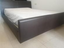 Estructura de cama con respaldo inclinado DE PIEL, color marró oscuro (café) + SOMIER.