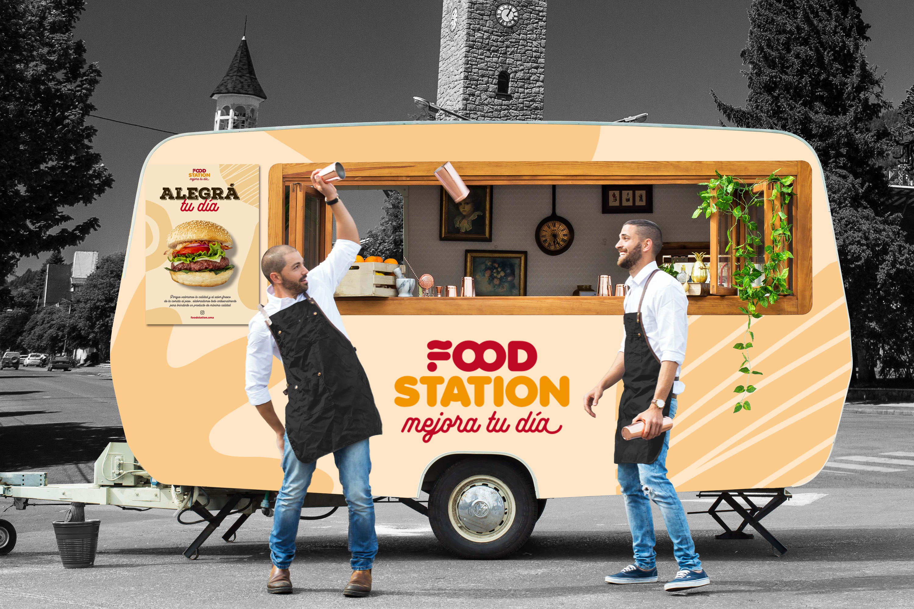 FoodStation, cajaFoodStation, bolsas de papelFoodStation, pinesFoodStation, servilletasFoodStation, maquetación del carroFoodStation, gorra y remeraFoodStation, vaso con tapaFoodStation, aficheFoodStation, servilletasFoodStation, aficheFoodStation, vasosFoodStation, afiche