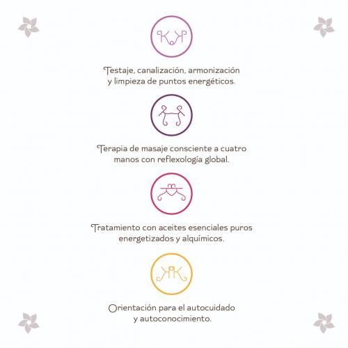 Armonizamos, a través de nuestras manos,  la energía del amor incondicional ; liberando, disolviendo cargas energéticas, mejorando la circulación en todos nuestros cuerpos (físico, vital, mental, emocional...), favoreciendo la calidad de vida, el bienestar y la salud en general, acompañando en el autocuidado y autoconocimiento también con la alimentación, el descanso y el físico....